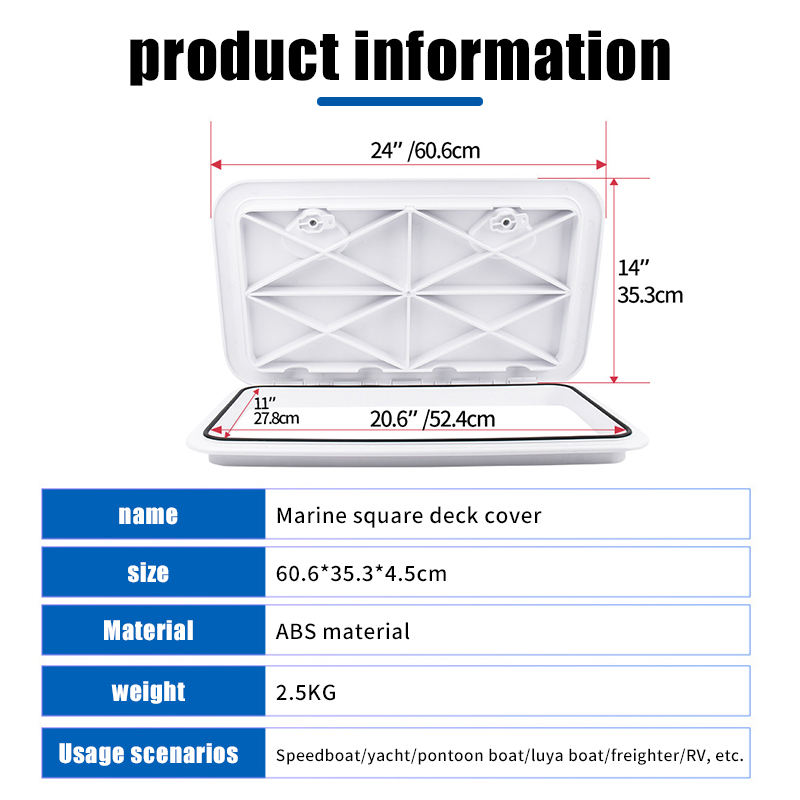 Couverture de trappe de pont de 24 pouces pour yacht marin, couvercle d'inspection de bateau 606*353, housses de bateau du fabricant