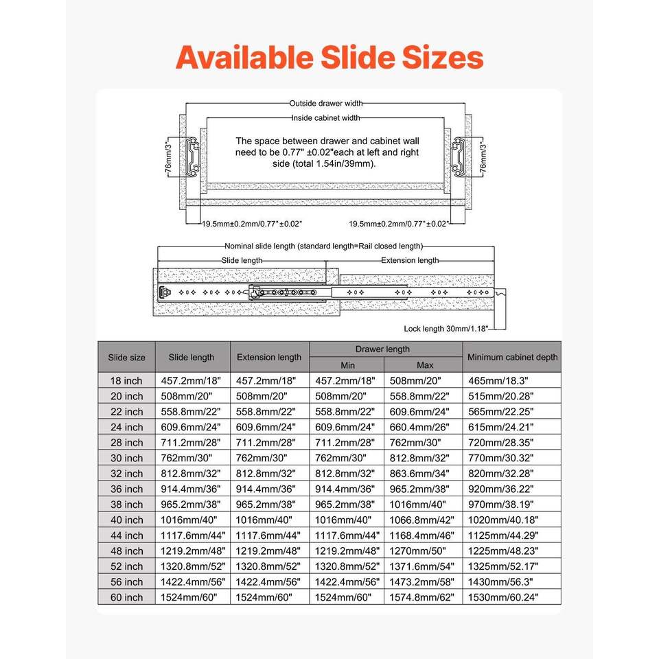 Glissières de tiroir à extension complète de 24 pouces, capacité de charge de 500 lb, roulement à billes, fixation latérale, 1 paire, glissières de tiroir à verrouillage sécurisé