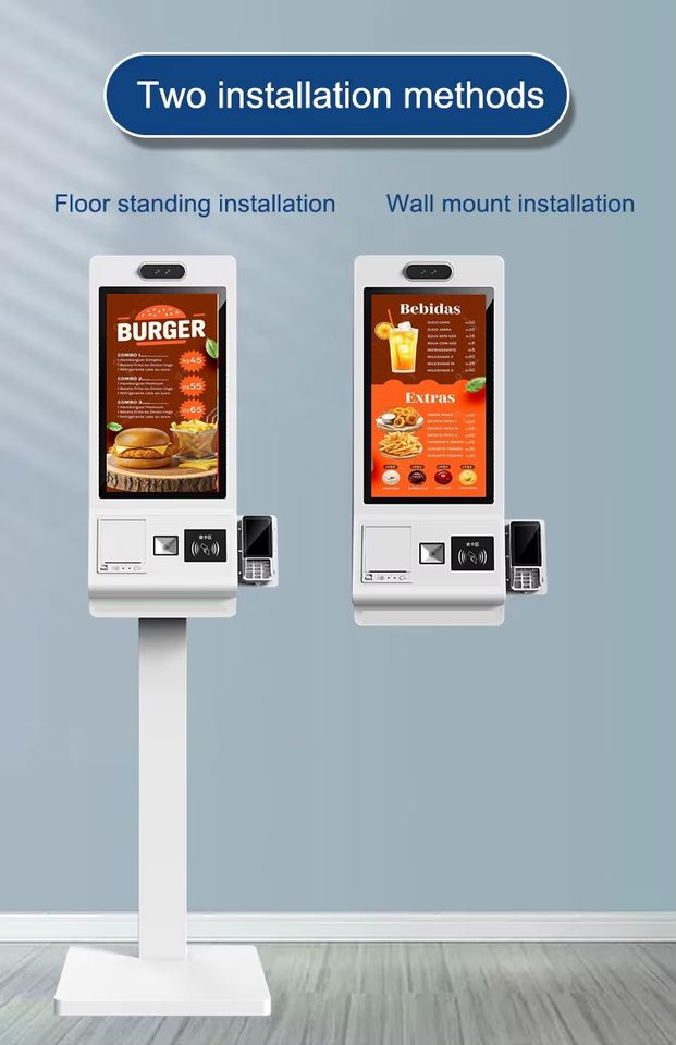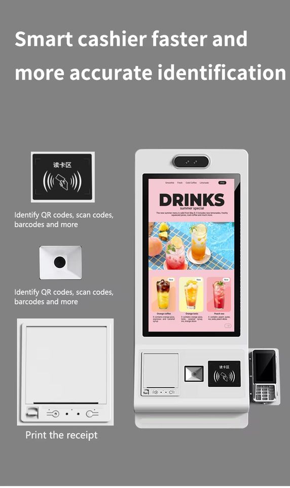 Kiosque tactile intérieur Android/Windows de 24 pouces avec système de commande en libre-service avec scanner de codes QR pour les machines de point de vente des restaurants