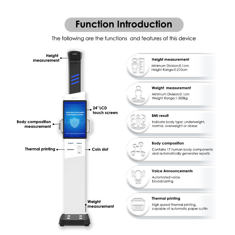 Analyseur corporel intelligent de 24 pouces avec grand écran LCD pour centres de fitness, gymnases, OEM, ODM, support personnalisé