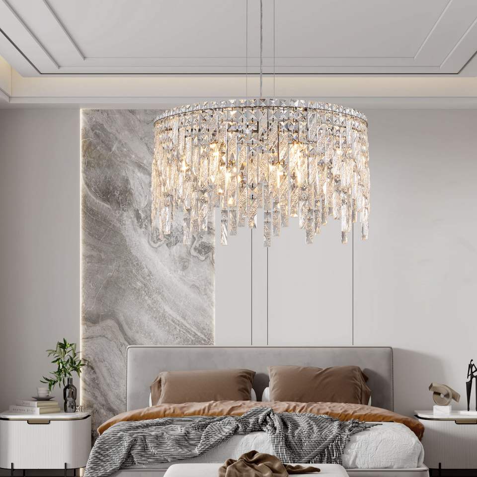 Lustre rectangulaire contemporain en cristal argenté luxueux de 24 pouces pour salle à manger, salon, grand hall, ampoules non incluses
