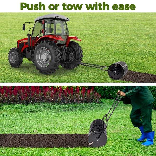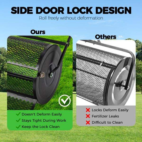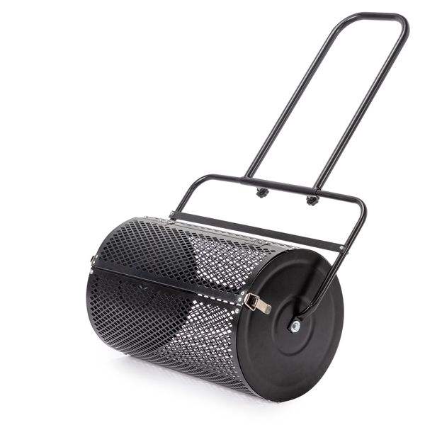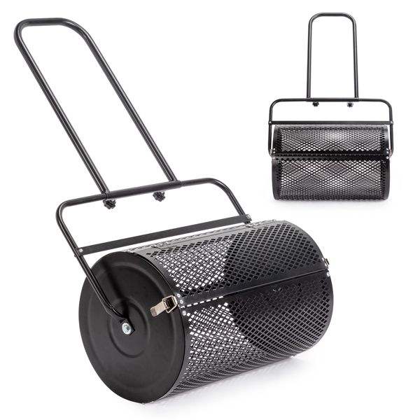 24-Inch Powder Coated Steel Mesh Basket Topdreh Compost Spreader for Lawn Garden Peat Moss Roller Double Fertilizer Spreader