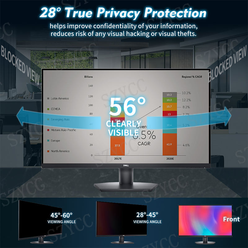24 pouces écran de confidentialité 16:9 écran large pour moniteur d'ordinateur Dell écran de filtre d'écran amovible facile bouclier Anti-éblouissement et lumière bleue F