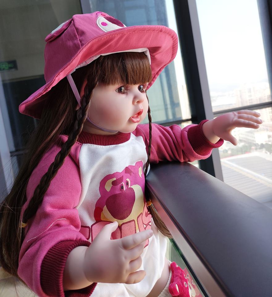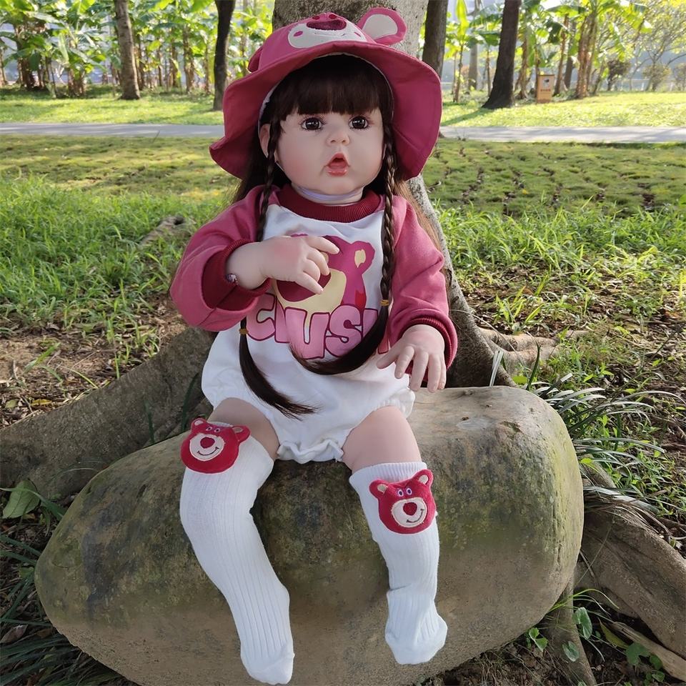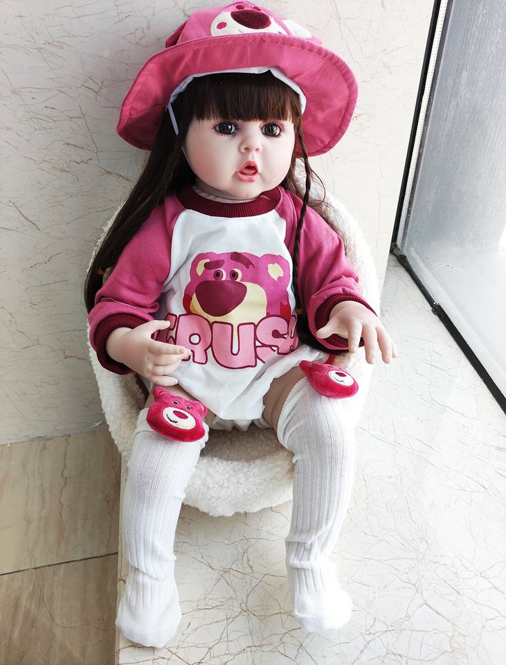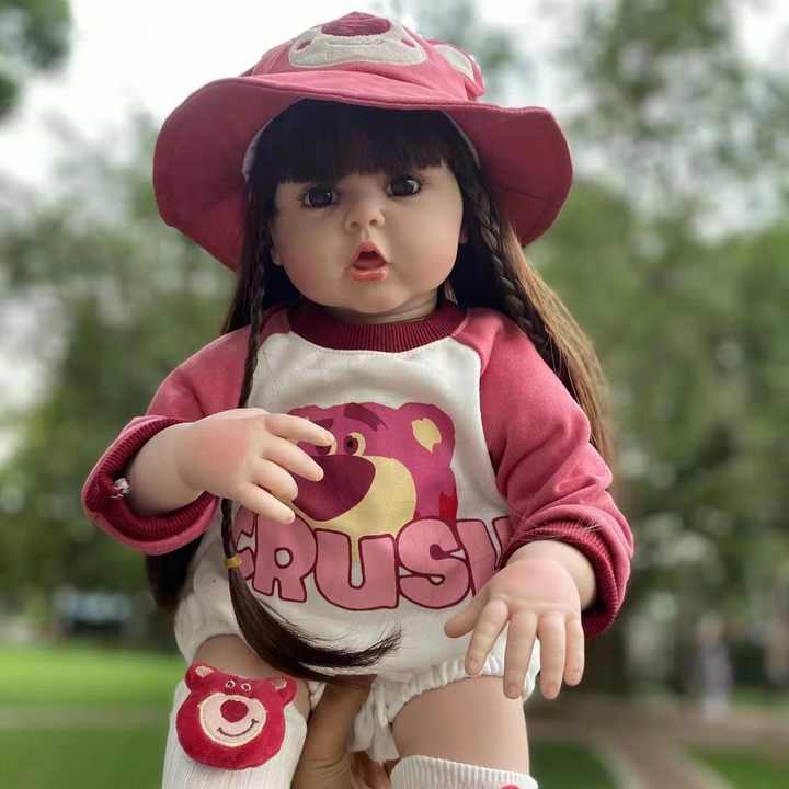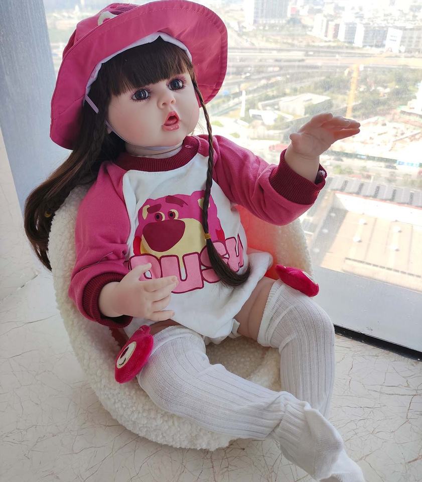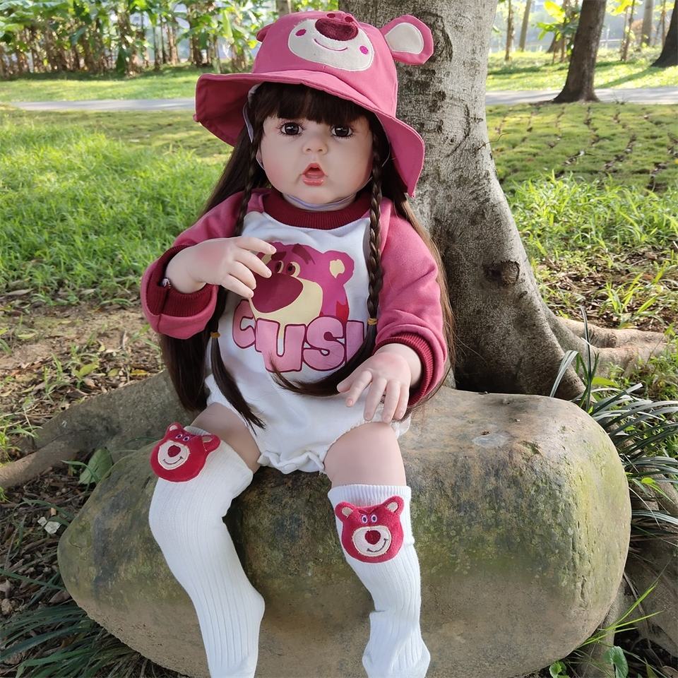 Poupée Reborn en Silicone de 24 Pouces, Réaliste, Souple, Ponderée, Mignonne, pour Filles, avec Fonction de Succion des Doigts