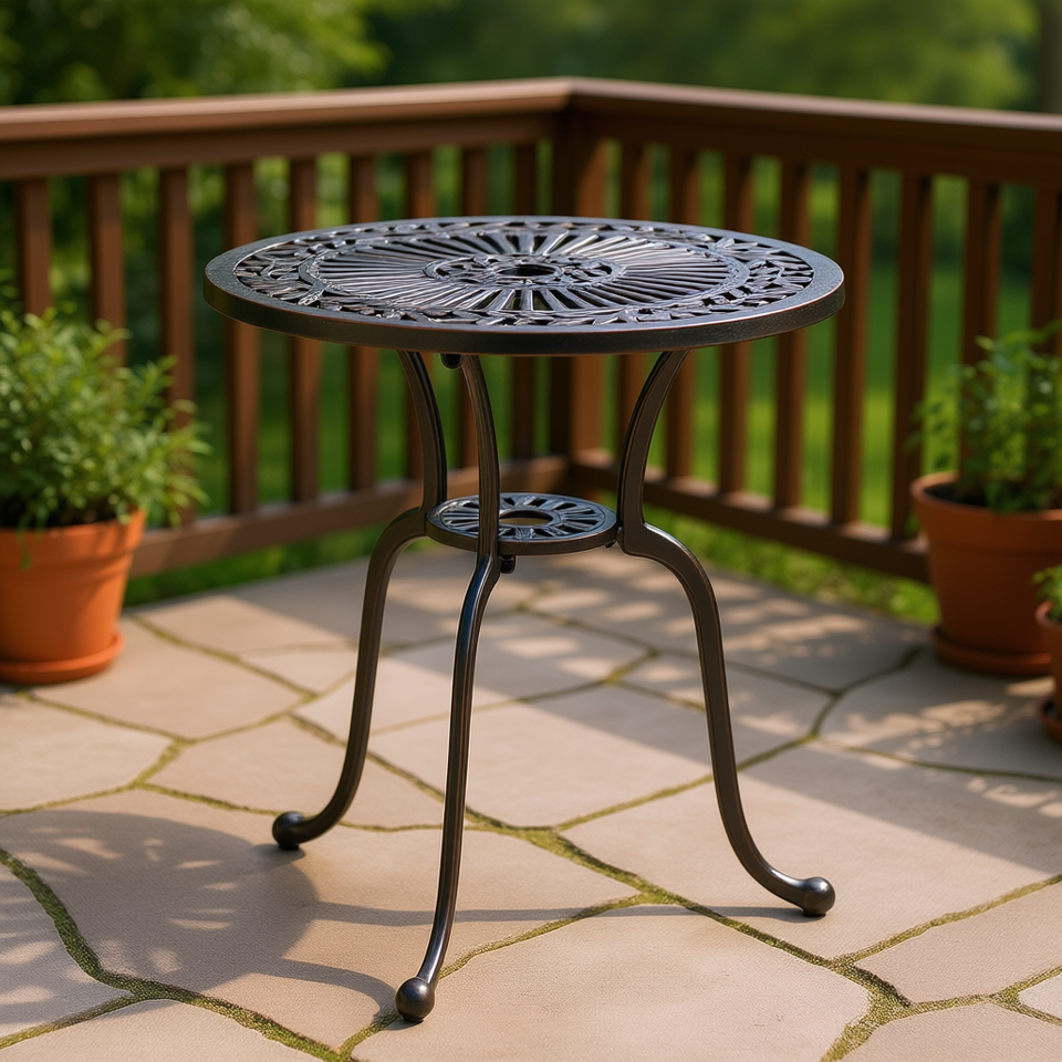 Table de patio ronde en aluminium moulé de 24 pouces avec trou pour parasol, table de bistrot d'extérieur au design traditionnel