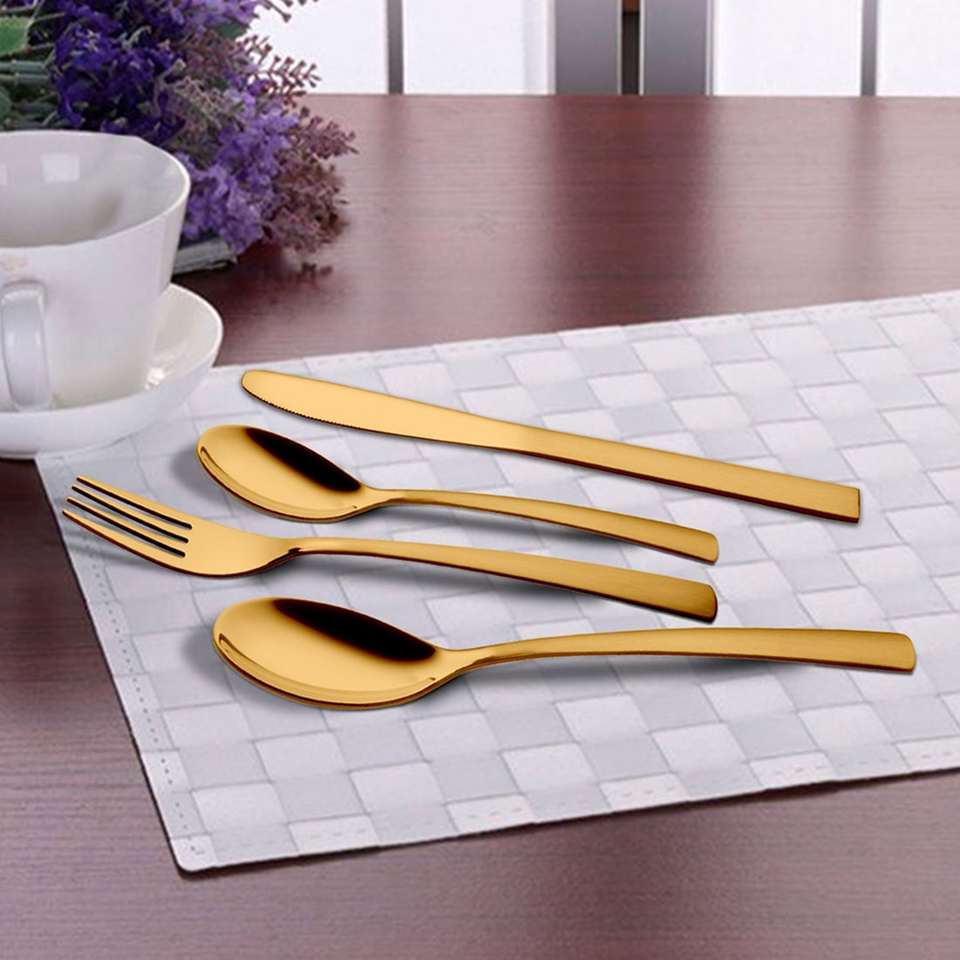24 PCS Set de couverts en acier inoxydable avec revêtement PVD ton or GSW Plain Premium Ustensiles