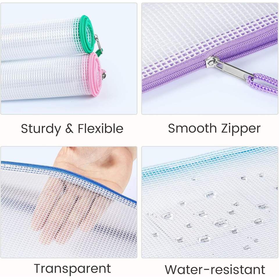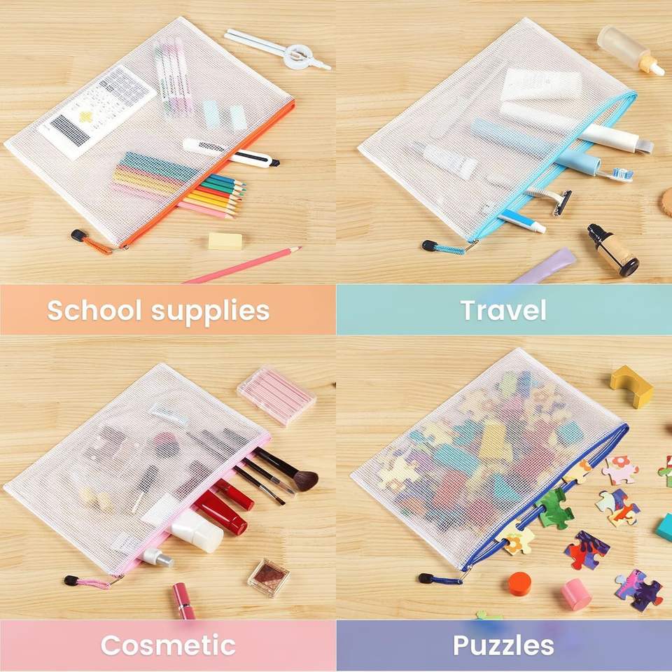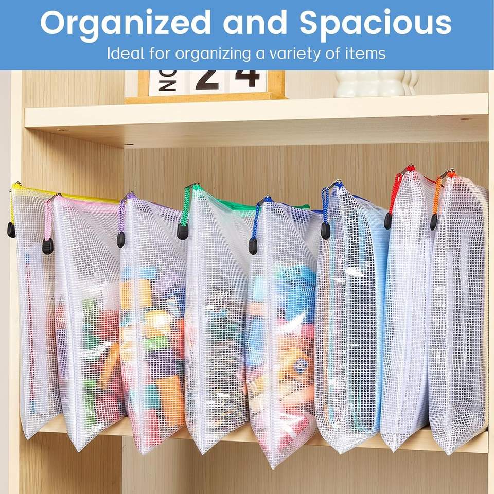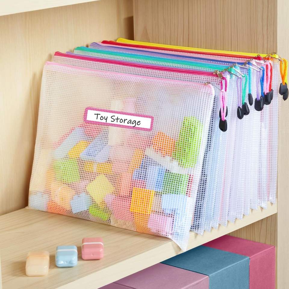 Lot de 24 pochettes en maille A4 avec étiquettes adhésives, dossiers robustes format lettre pour l'organisation de jeux de société, puzzles et jouets, pochette zippée en maille
