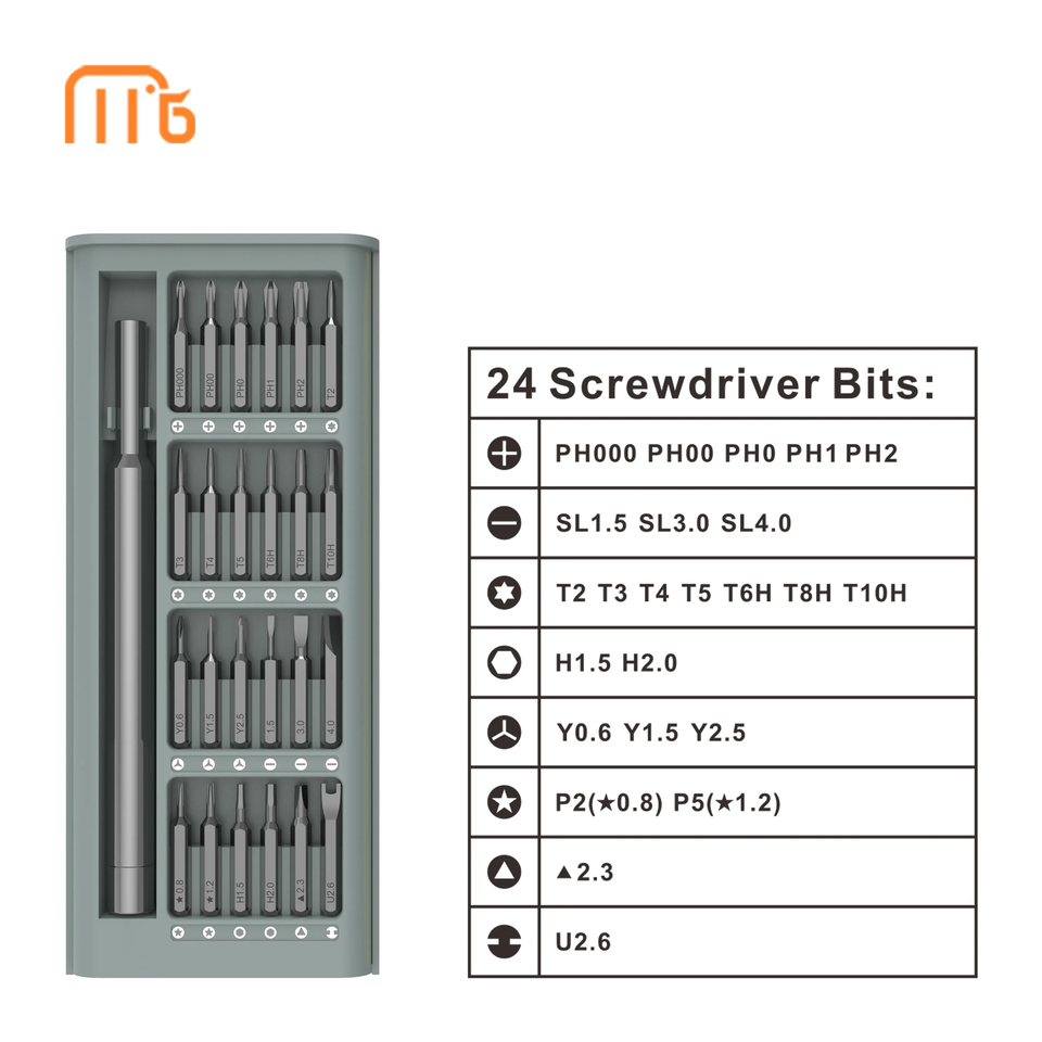 Kit de tournevis magnétique multifonction à manche en acier de 24 pièces avec options OEM de qualité DIY pour la réparation d'ordinateurs domestiques