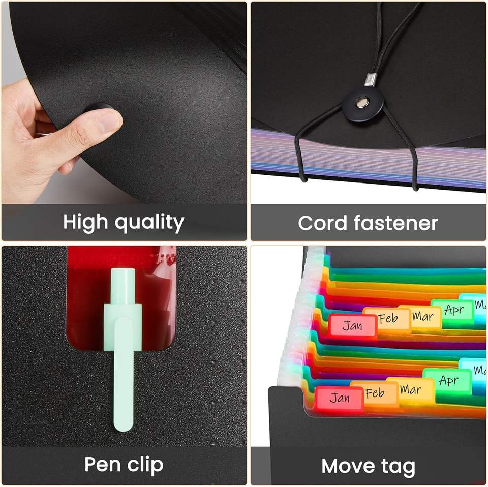 Porte-documents extensible à 24 pochettes avec étiquettes vierges, organiseur de fichiers avec couverture extensible, dossier accordéon de bureau