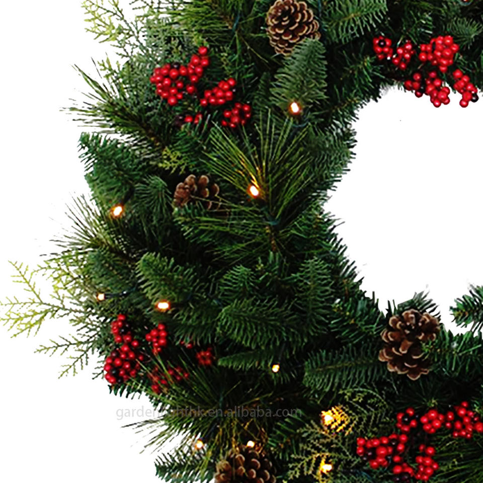 Product name:24" Pre-Lit Christmas Wreath with Pine Cones & Red Berries