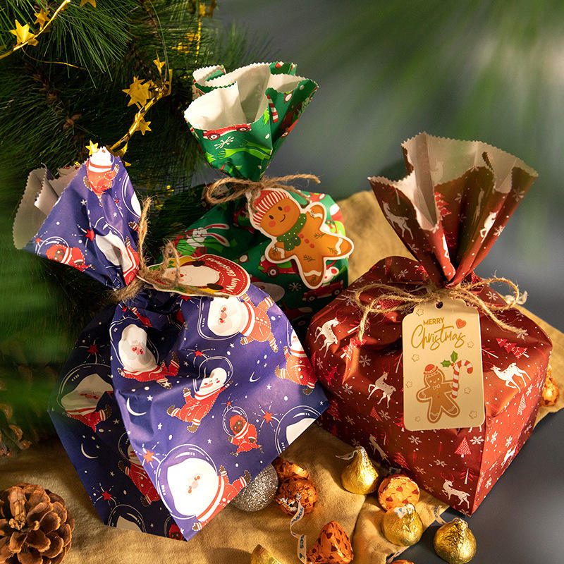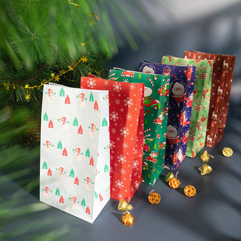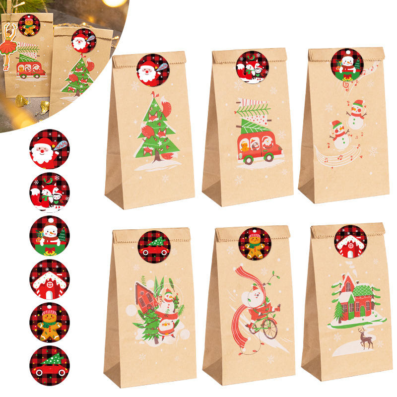 24 ensembles d'autocollants pour sacs en papier kraft portables, emballage de Noël, sac cadeau avec revêtement en cire pour l'emballage des fêtes