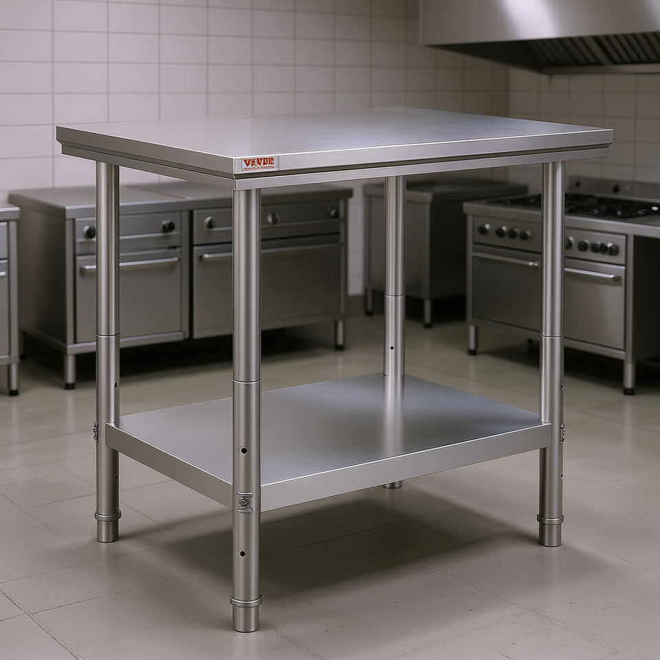 Table de travail en acier inoxydable Vevor 24 x 30 x 32 pouces avec pieds réglables, étagères de rangement pour cuisine commerciale