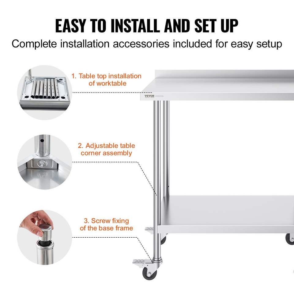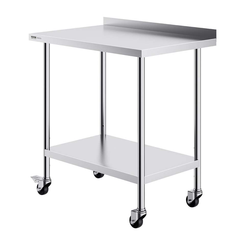 Table de travail en acier inoxydable pour cuisine commerciale, robuste, 24 x 36 x 40 pouces, avec roulettes, plan de travail en métal pour la préparation des aliments