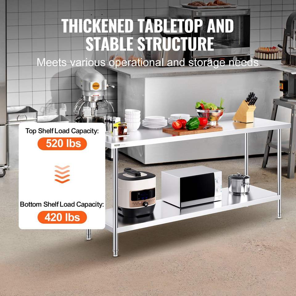 Table de travail commerciale en acier inoxydable de 24x72x36 pouces Table de travail de préparation à usage intensif Hauteur réglable pour restaurant, maison et hôtel