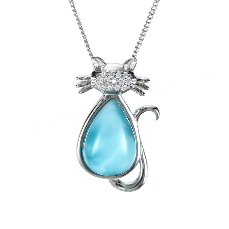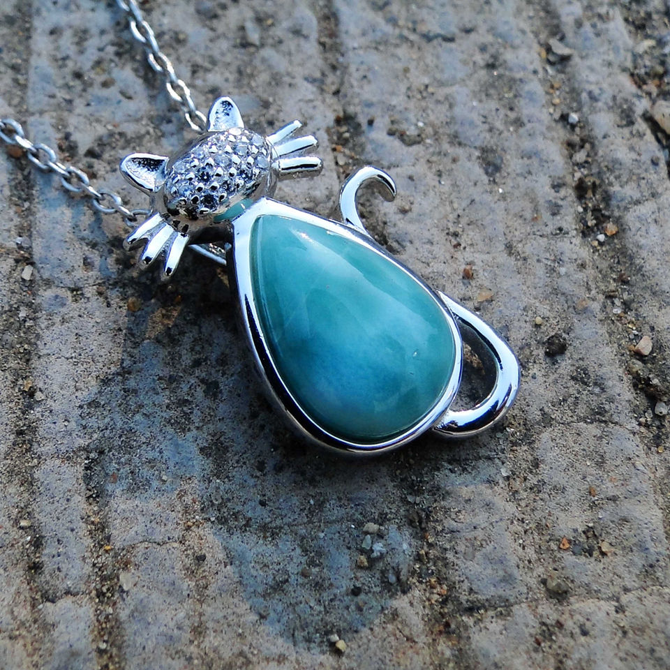 Pendentif en argent sterling 925 avec larimar naturel bleu, motif chat mignon, capacité de réponse 24h/24