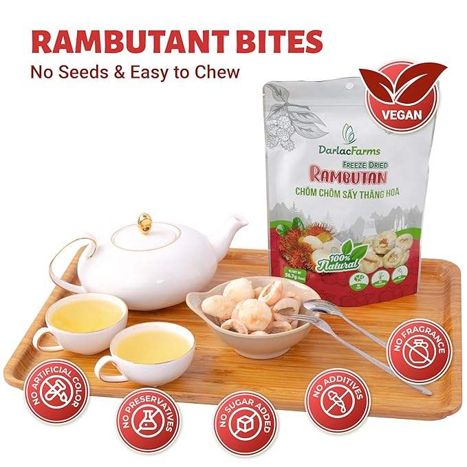 Darlac Farms FD Dried Rambutan Sweet Sliced Ready-to-Eat Fruit Freeze Dried with 24 Months Shelf Life Vietnam Origin Bulk
