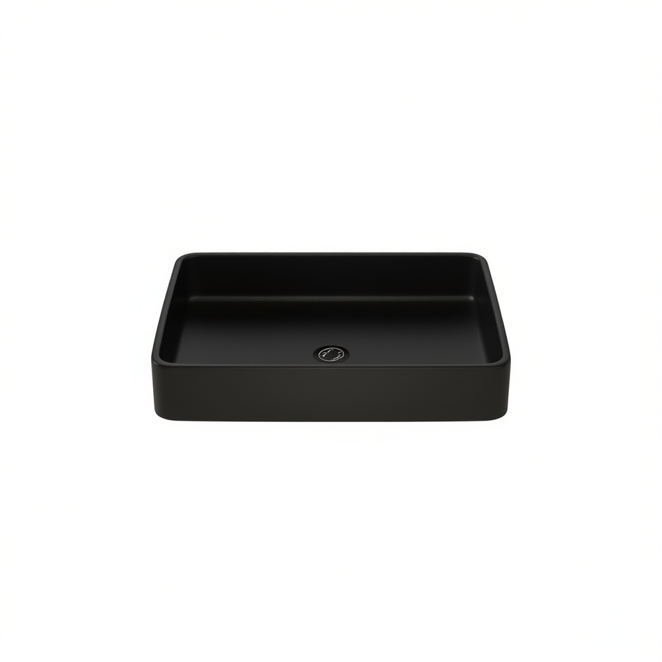 Vasque de salle de bain rectangulaire en céramique noire 24x16 pouces à poser sur le plan, design minimaliste