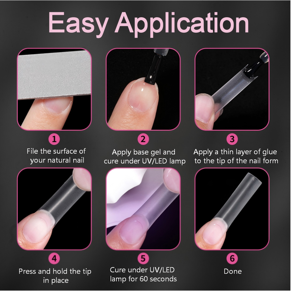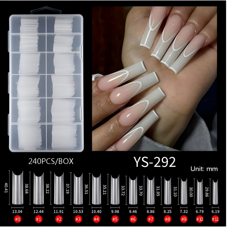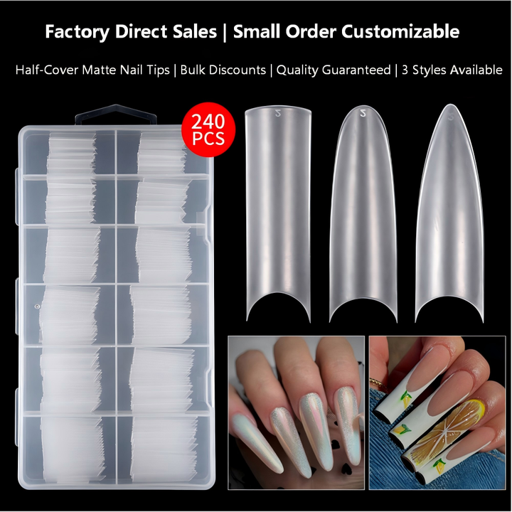 Boîte de 240 capsules d'ongles en gel souple transparent mat, longues, demi-couverture, style French, sans besoin de lime, pour la création et l'extension d'ongles