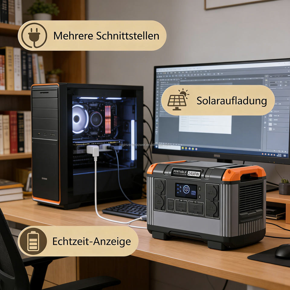 Station d'alimentation portable 2400W 2000W 2000Wh, prise EU, charge rapide, batterie LifePO4, pour travaux en extérieur et alimentation de secours à domicile