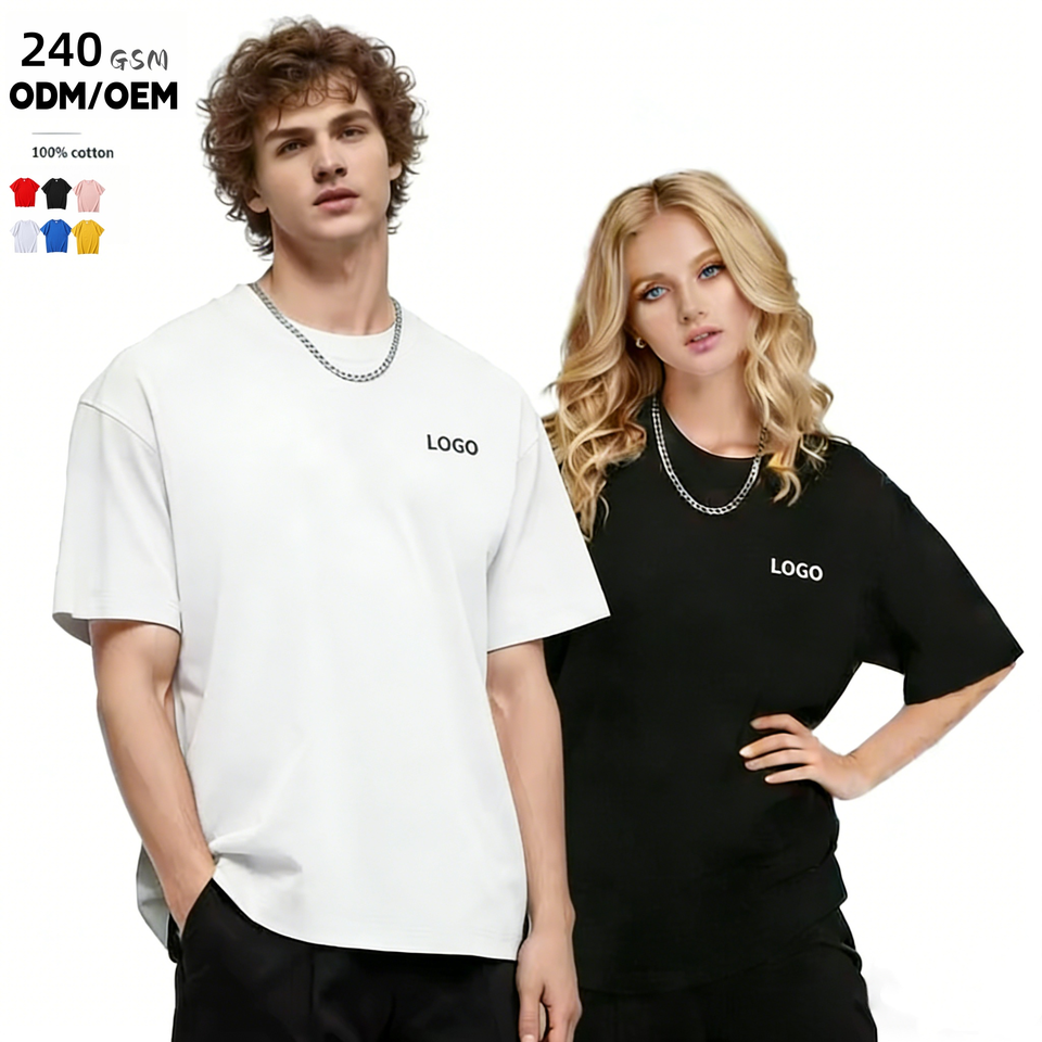 240GSM Heavyweight 100% Cotton Men's Oversize Plus Size Blank T-Shirt Custom Printing Wholesale Short Sleeve Casual