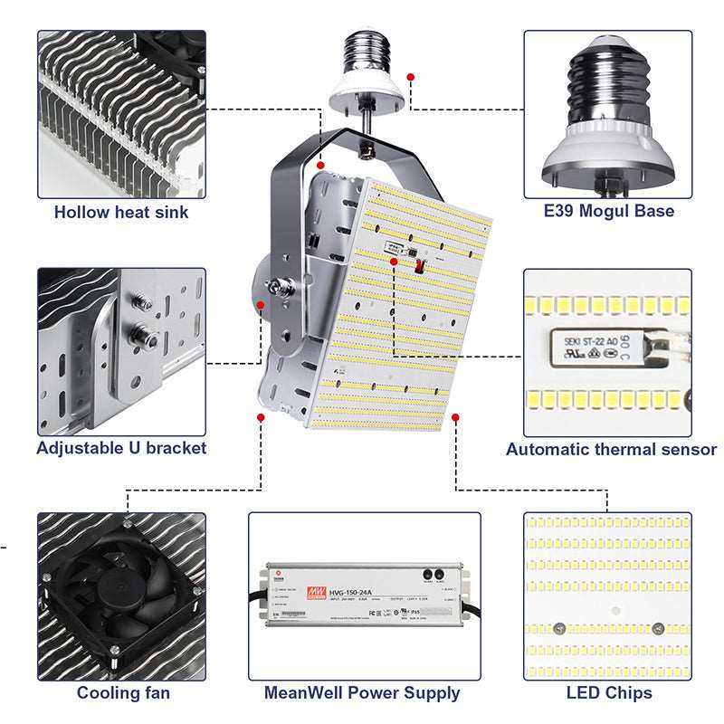 Kit de remplacement LED 240W-33 600 Lumens 5000K pour lampes MH/HPS/HID 1000W avec culot E39 Mogul 110-277V