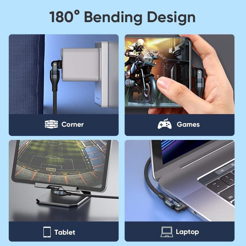 Câble de charge rotatif 240W pour téléphone portable 540 ° Swivel & 180 ° Câble de charge rapide et de transfert de données pour iPhone 15 16 17 Samsung 1,8 m