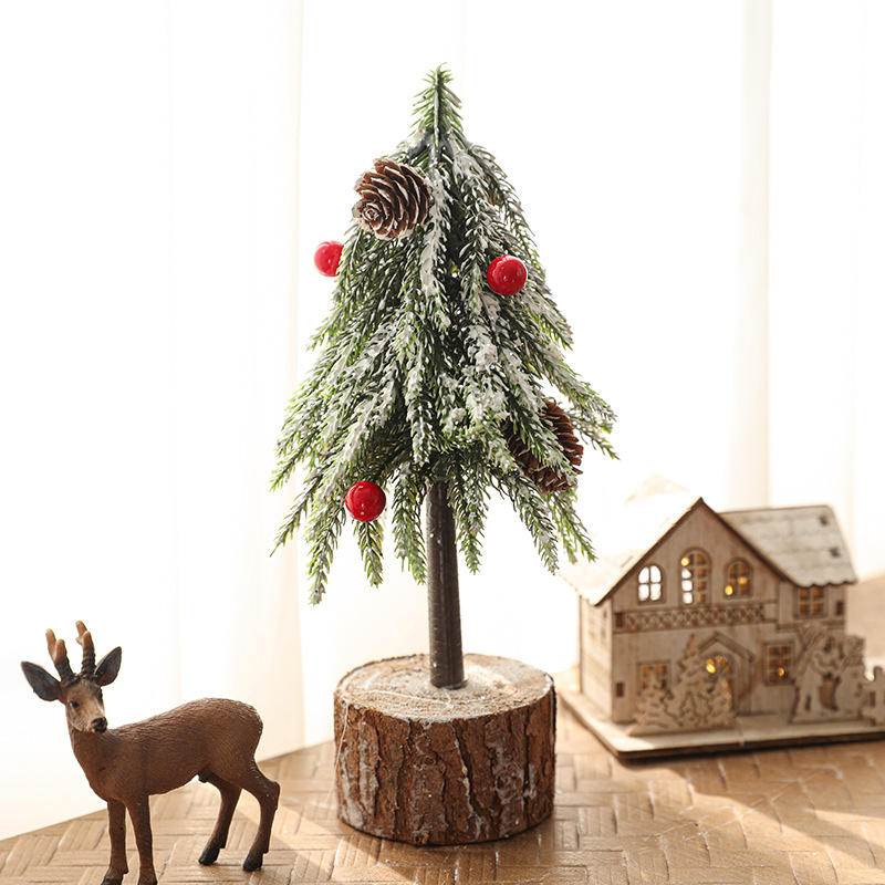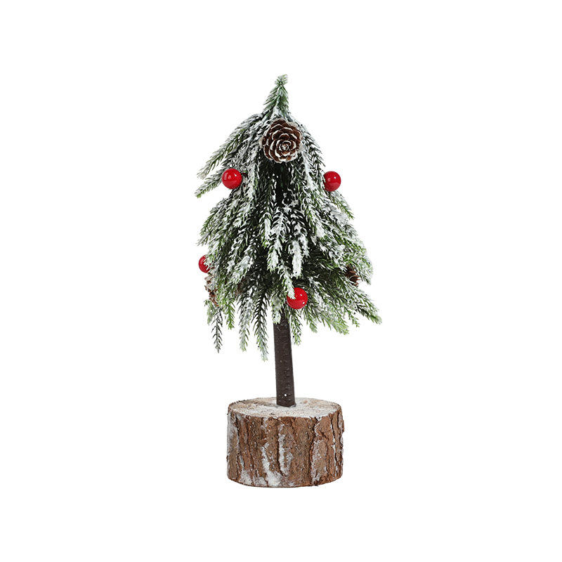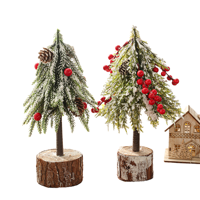 24CM Écologique En Plastique Simulation Vert avec Neige Mini Piquet De Fruits Rouges En Pot LED Arbre De Noël Petits Ornements De Bureau