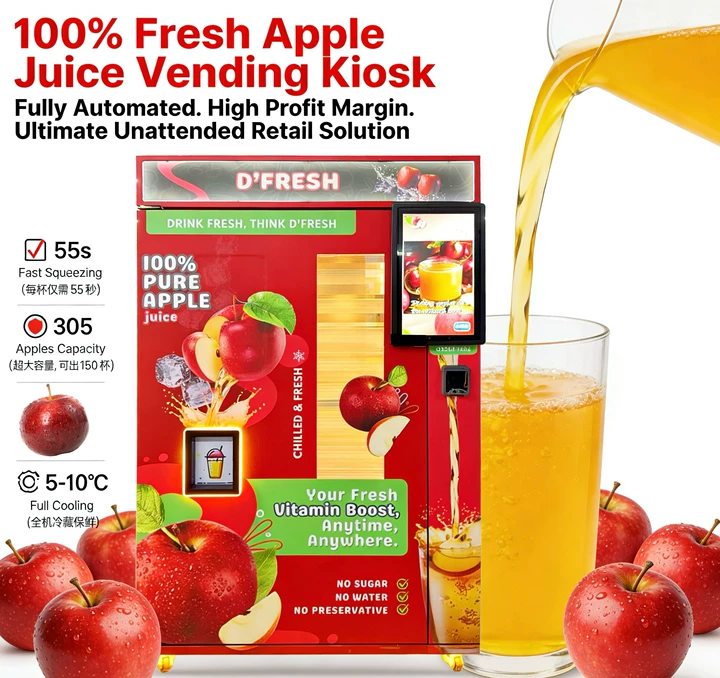 Kiosque automatique de jus de pomme frais