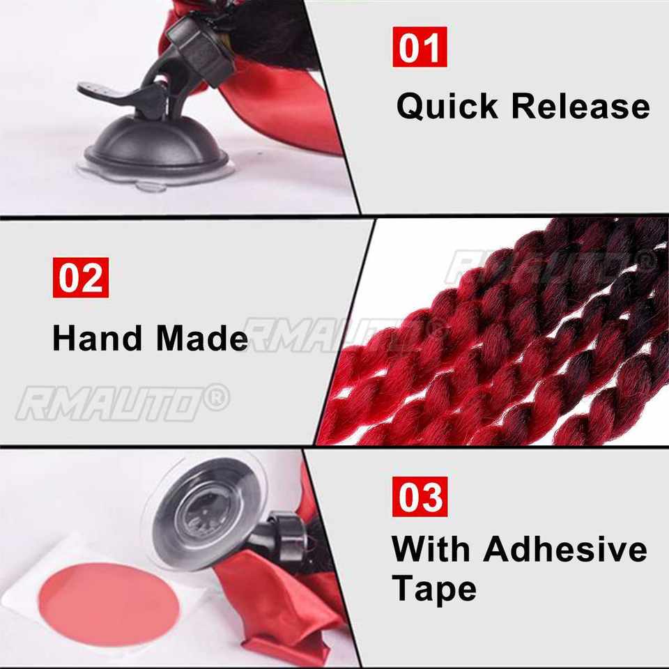 Tresses de casque de moto de 24 pouces pour femmes, queue de cheval tressée avec ventouse