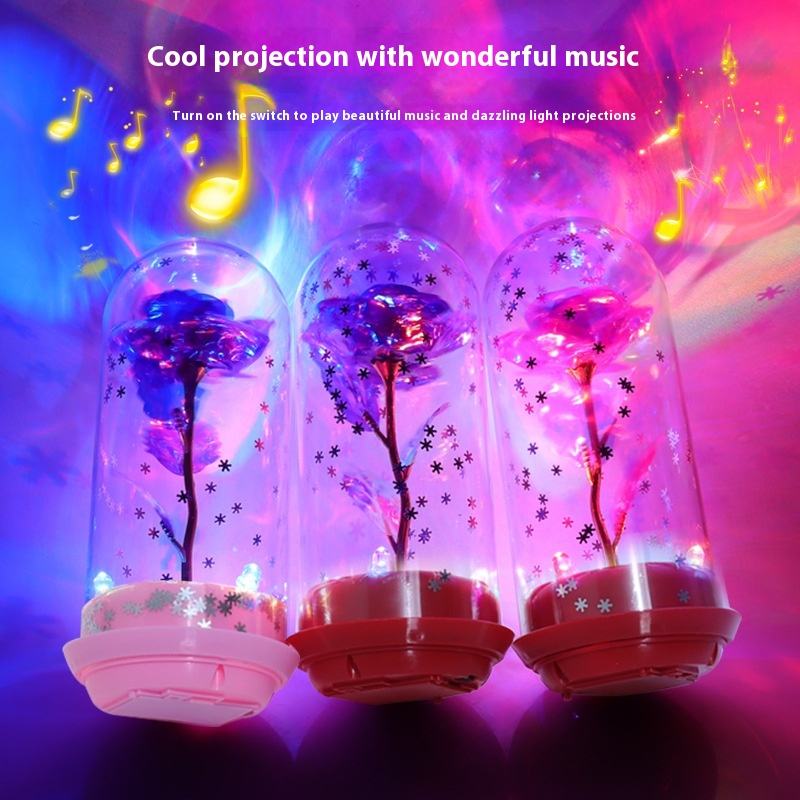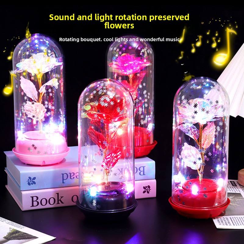24K Gold Foil Eternal Flower Rose Glass Lampshade Rotating Luminous Music Ornament for Valentine's Day Birthday