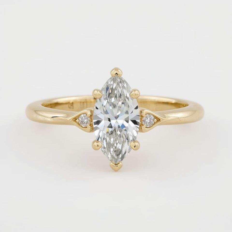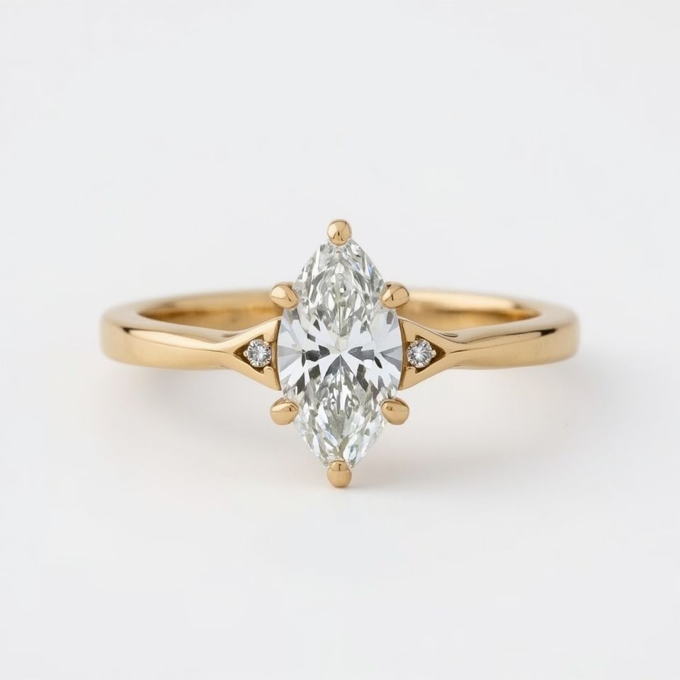 24K Gold Marquise Cut Diamond Engagement Ring for Women Rhodium Plated Fine Jewelry for Wedding and Party
