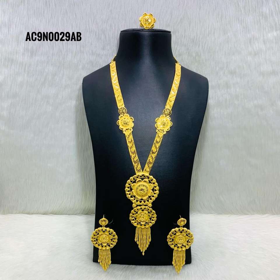 Ensemble de bijoux longs en plaqué or 24K, collier de mariée, forme ronde, fleurs
