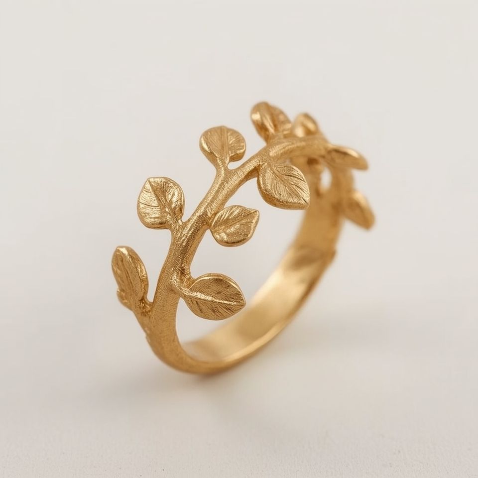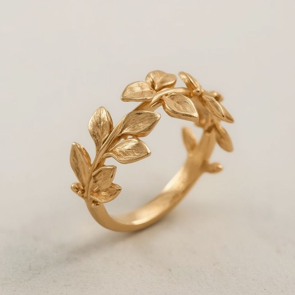 24K Real Gold Leaves Ring for Women Fine Jewelry Nature Inspired Design Sustainable Luxury OEM Jewelry Manufacturer