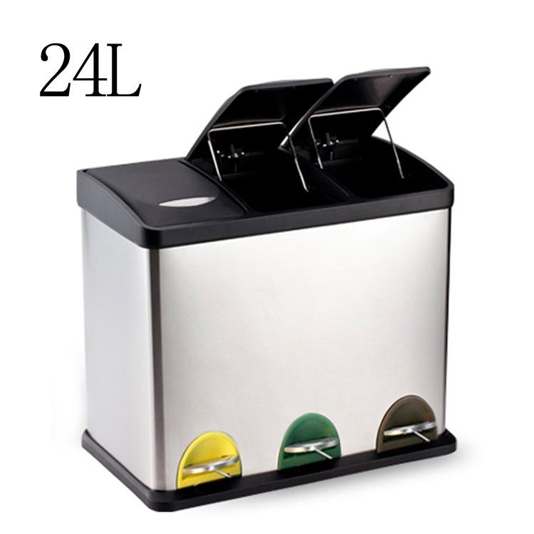 Poubelle 24L pour poubelle à pédale en acier inoxydable à trois compartiments pour le ménage et la communauté à Pékin