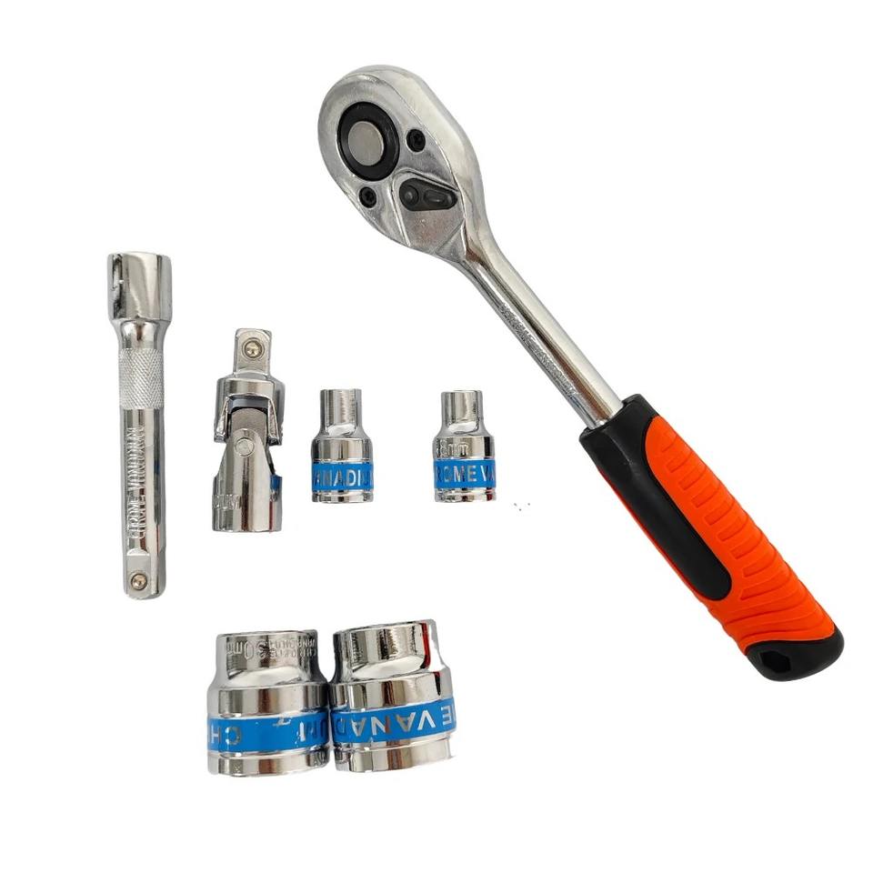Coffret de 24 outils de réparation automobile pour mécanicien, jeu de clés à douille et cliquet en fer