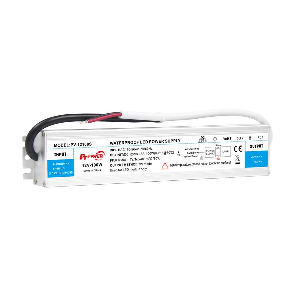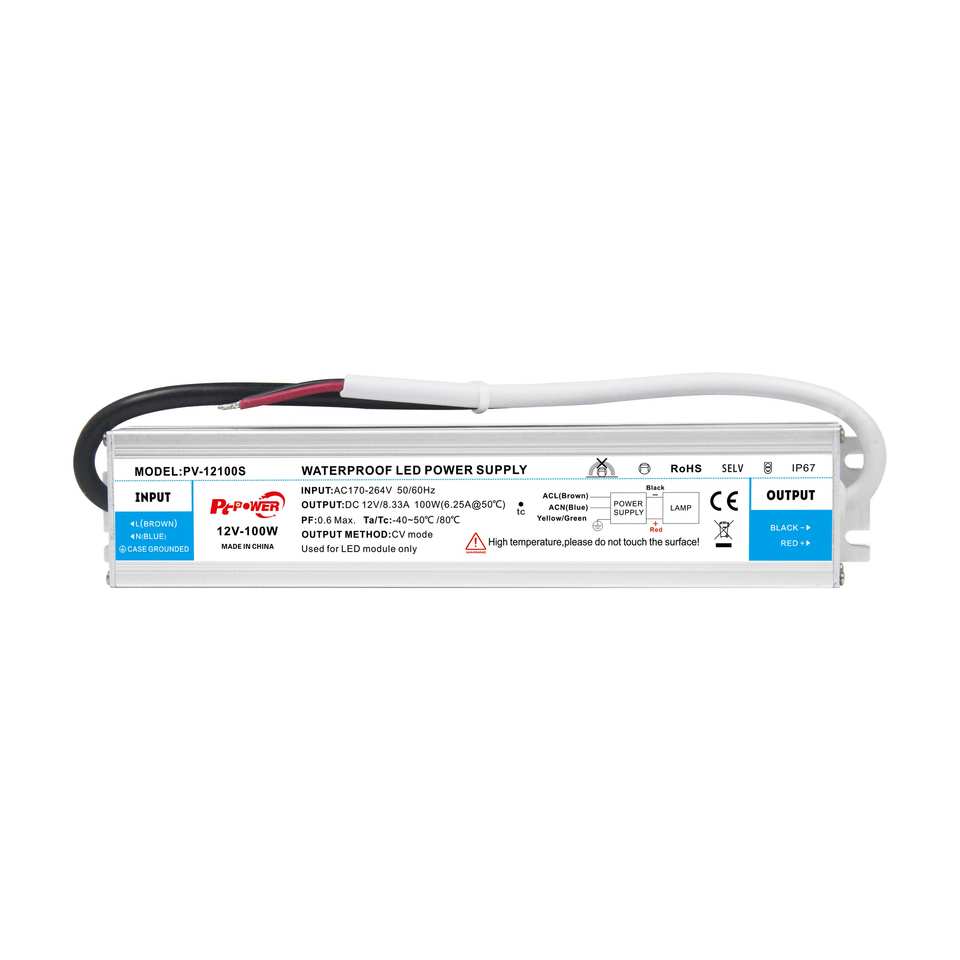 Alimentation LED CV 100W en boîtier aluminium, compatible EMC, 170-264V AC-DC 12V 24V, étanche IP67, pour caisson lumineux publicitaire, simple sortie