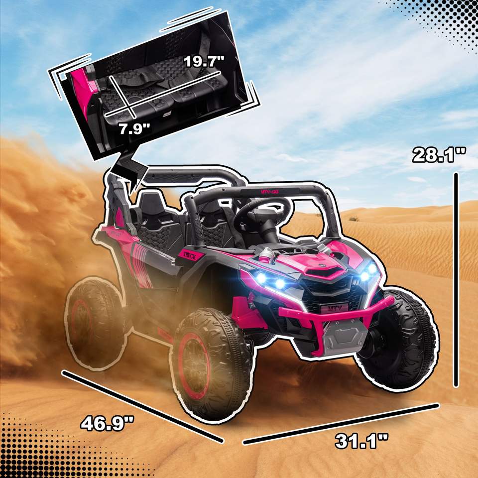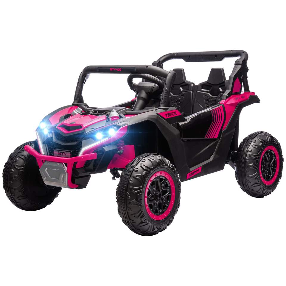 Voiture électrique rose 24V 7AH à deux places, 4MPH, avec 4 amortisseurs, klaxon musical et lumières LED pour les enfants de 3 à 8 ans