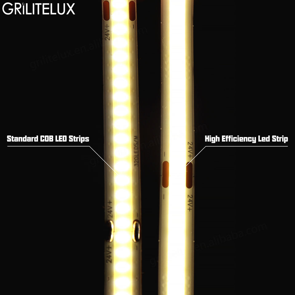 Bande lumineuse LED COB 24V, 480LEDs/m, 8mm, 140lm/W, blanc chaud/blanc neutre/blanc froid, lumière sans points pour la décoration de la maison, de la cuisine et des armoires