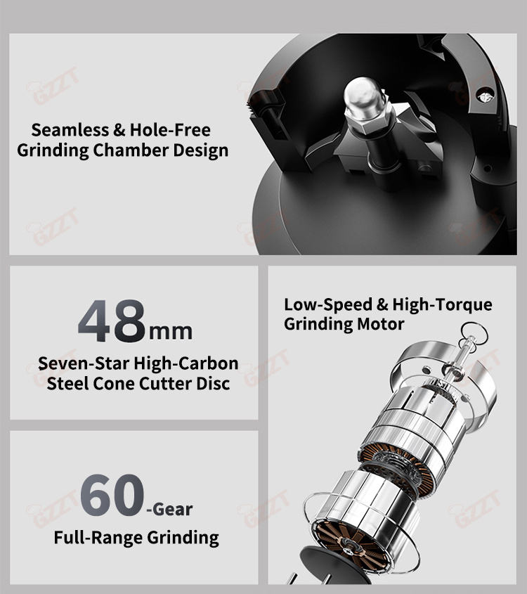 Moulin à café électrique automatique à faible vitesse 24V, démontage rapide, 140 tr/min, lame conique de 48 mm, machine à moudre pour expresso