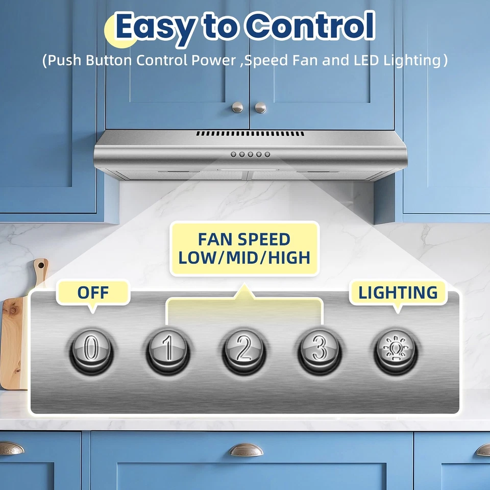 Hotte de cuisine encastrée 24 pouces en acier inoxydable 230 CFM avec LED – Nouveauté