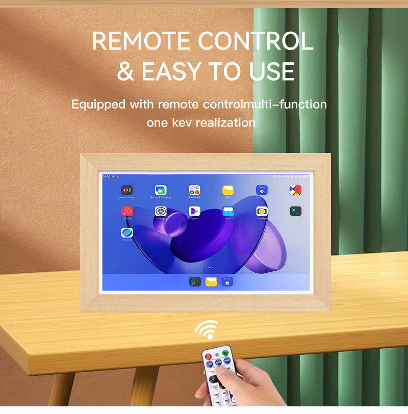 Cadre photo numérique 24 pouces Android en acrylique et bois avec écran tactile, partage d'album électronique, affichage vidéo et signalétique artistique cloud