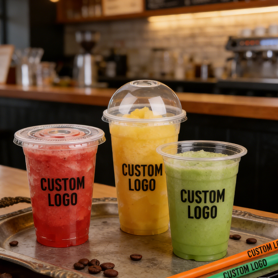 Gobelets en plastique à paroi simple de 24 oz (90 mm) avec couvercle pour livraison de latte glacé, gobelets de café imprimés UV