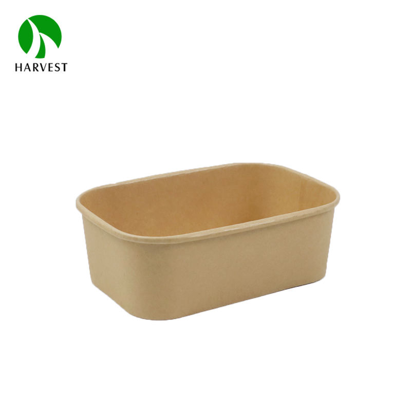 Bol à salade rectangulaire en papier kraft jetable de 24 oz pour plats à emporter, nouilles, etc.