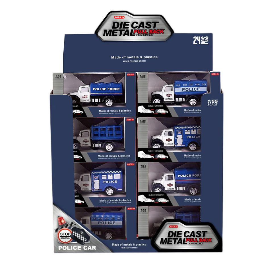 24 pièces 1/55 Simulation alliage métal Dicast métal modèle de voiture de police voiture camion moulé sous pression jouet retirer pour enfant