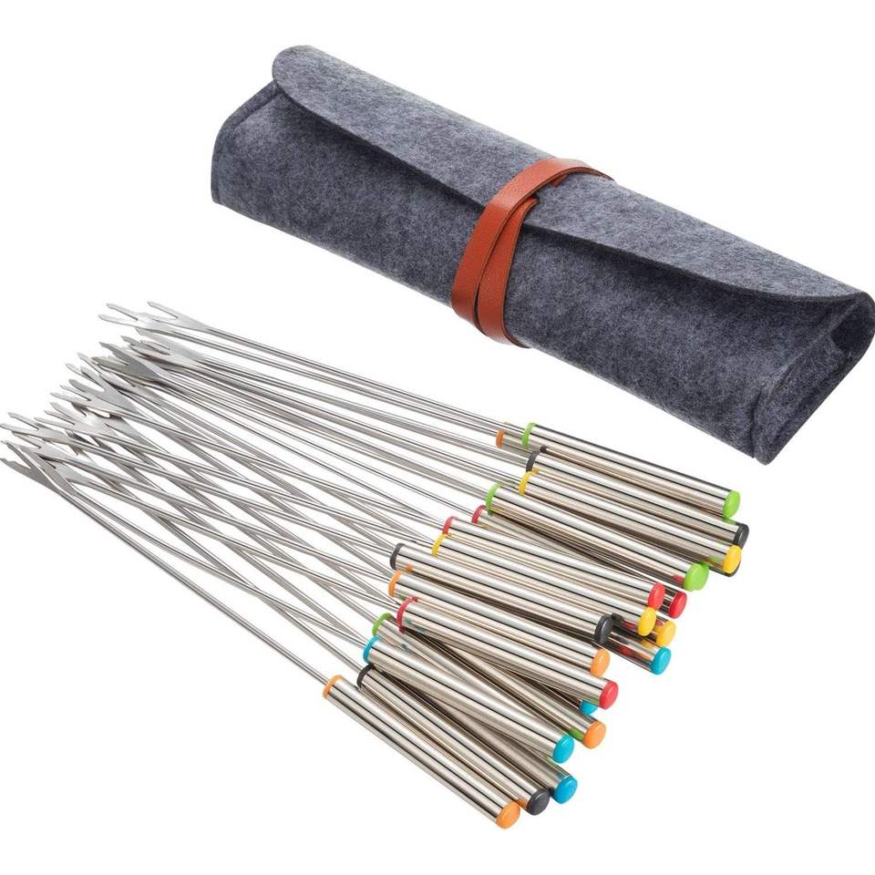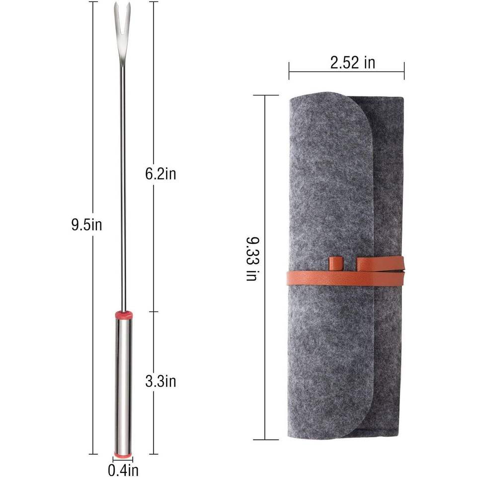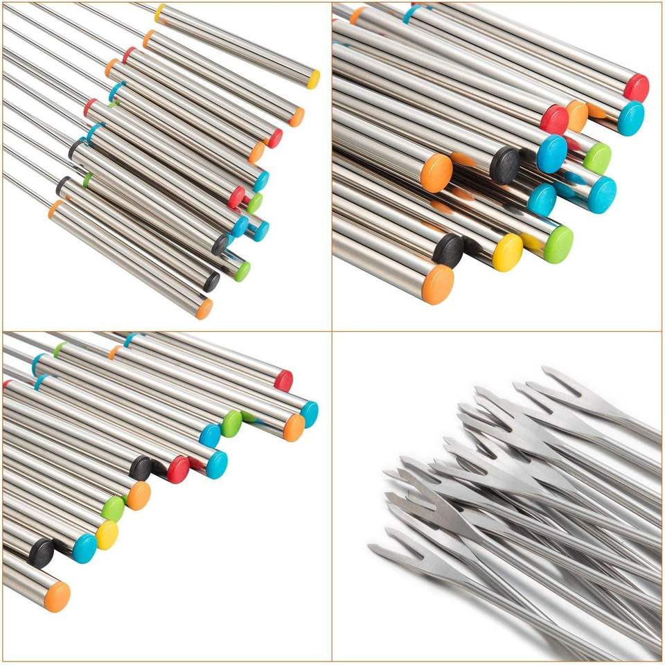 24 fourchettes à fondue en acier inoxydable de 9,5 pouces avec manche résistant à la chaleur, bâtonnets à fondue pour fromage, chocolat, guimauves et grillades