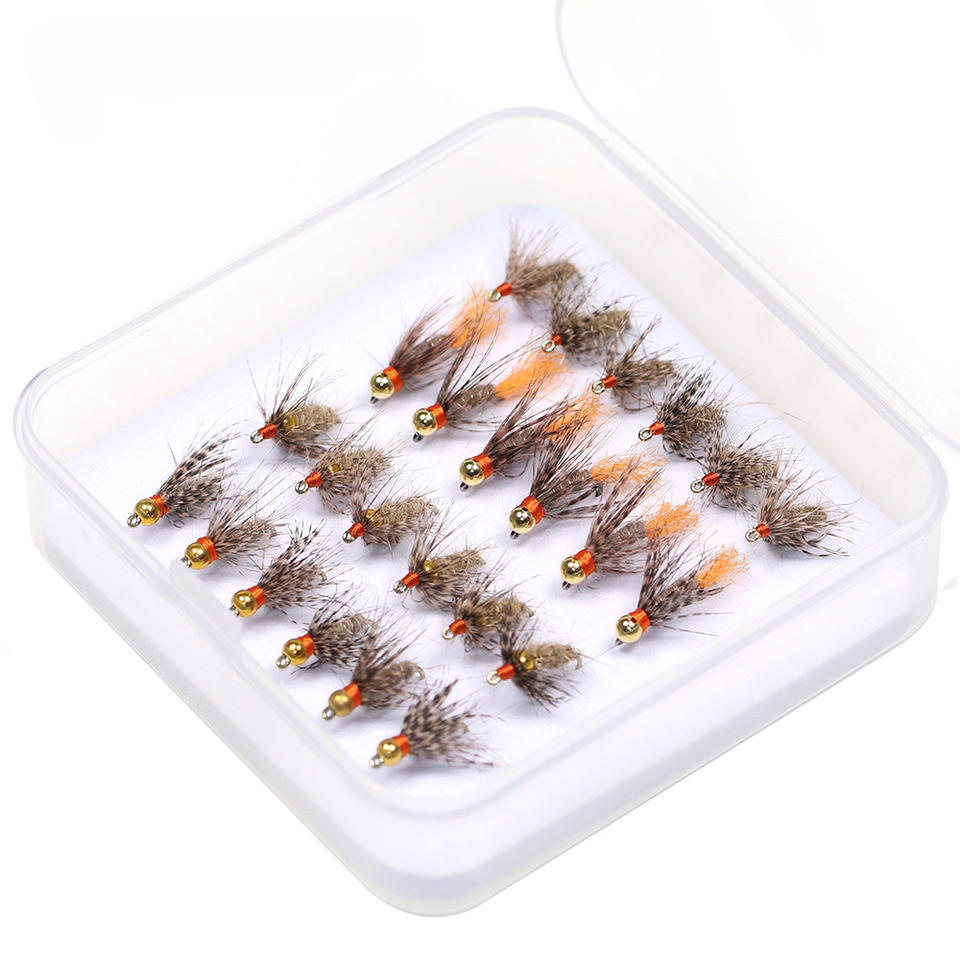 Kit de 24 pièces/boîte, tête de perle en tungstène/tête de perle en laiton/hameçon jig, mouche à oreilles de lièvre souple pour la pêche à la truite, au bar, à la perche, leurres de pêche 14 #