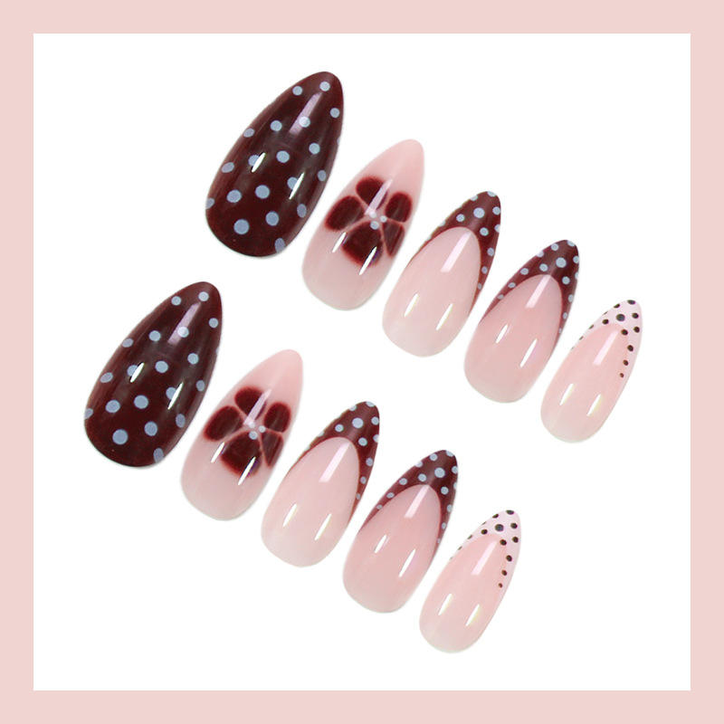 24pcs French Style Wearable Nails Almond Shape ABS Press Nails Detachable Pieces for Finger Christmas Manicure