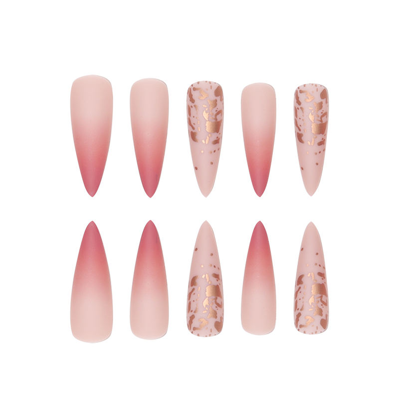 24 faux ongles en ABS acrylique de style gothique avec feuille d'or, longs et pointus, de qualité supérieure, pour un bricolage facile, nouveau modèle de style pour les doigts