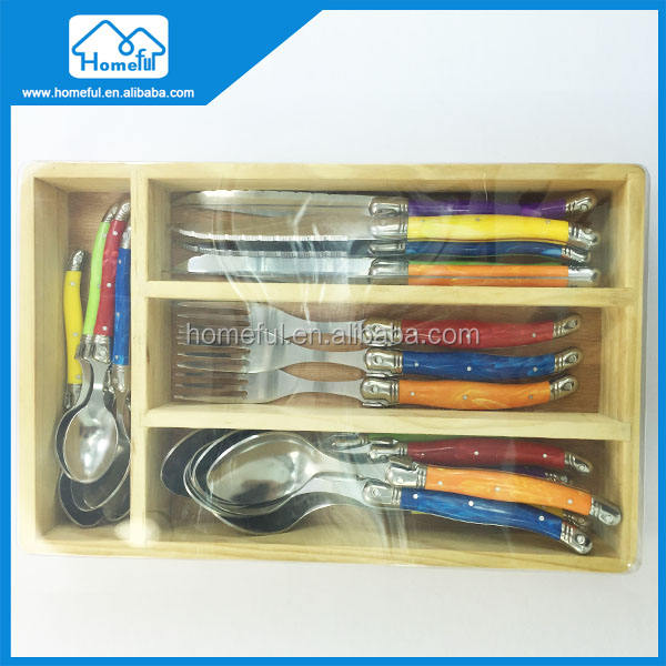 Ensemble de couverts Laguiole en acier inoxydable durable au design moderne, 24 pièces, avec manche en ABS coloré, outil de table en métal durable, ensemble cadeau