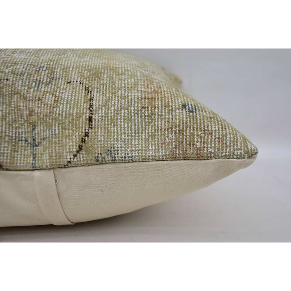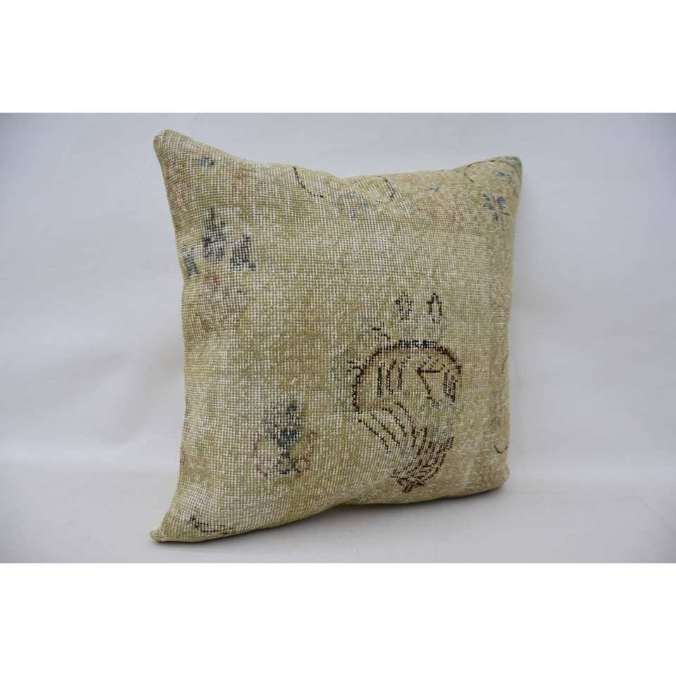 Coussin Patchwork Kantha en Laine Beige de 24x24 Pouces Tissé avec Coussin Décoratif Carré à Motif Toile Brodée Vintage